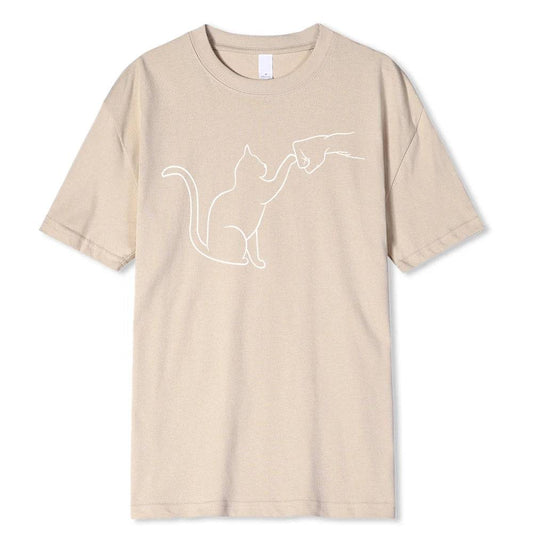Beige Agreement With Cat Funny Printing Man Boy T-Shirts Comfortable Male Clothes Tee Clothes Hip Hop O-Neck 100% Cotton