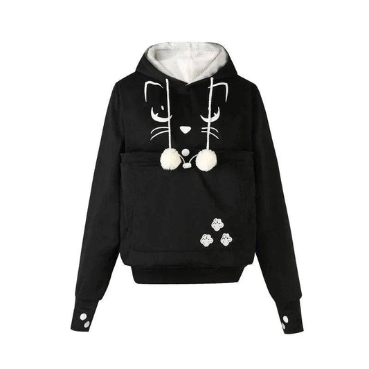 Black High Quality Sweatshirt Cat Dog Lovers Hoodies Kangaroo Pet Paw Ears Cuddle Pouch Pullovers