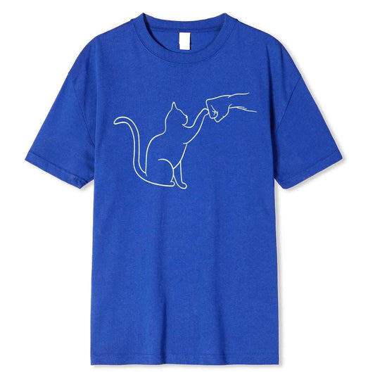 Blue Agreement With Cat Funny Printing Man Boy T-Shirts Comfortable Male Clothes Tee Clothes Hip Hop O-Neck 100% Cotton