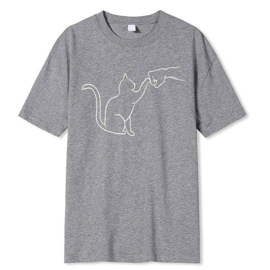 Gray Agreement With Cat Funny Printing Man Boy T-Shirts Comfortable Male Clothes Tee Clothes Hip Hop O-Neck 100% Cotton
