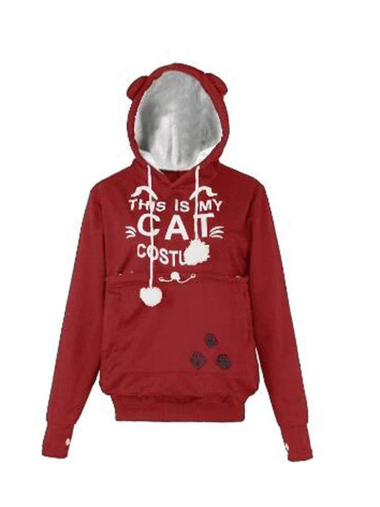 Red High Quality Sweatshirt Cat Dog Lovers Hoodies Kangaroo Pet Paw Ears Cuddle Pouch Pullovers