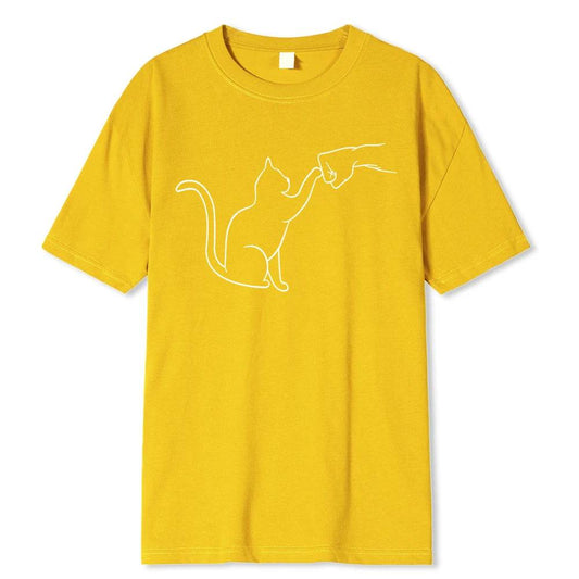 Yellow Agreement With Cat Funny Printing Man Boy T-Shirts Comfortable Male Clothes Tee Clothes Hip Hop O-Neck 100% Cotton