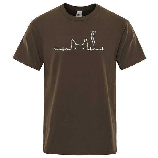 Brown Casual Men's T-Shirts Cat Cute Printed Summer Cotton O-Neck Short Sleeve Top Tee T-shirts