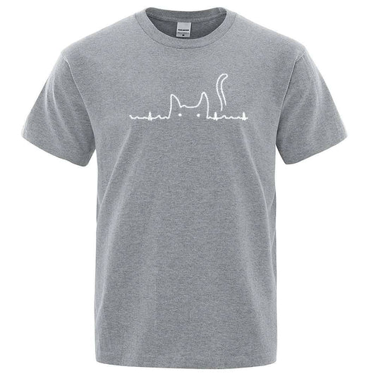 Gray Casual Men's T-Shirts Cat Cute Printed Summer Cotton O-Neck Short Sleeve Top Tee T-shirts