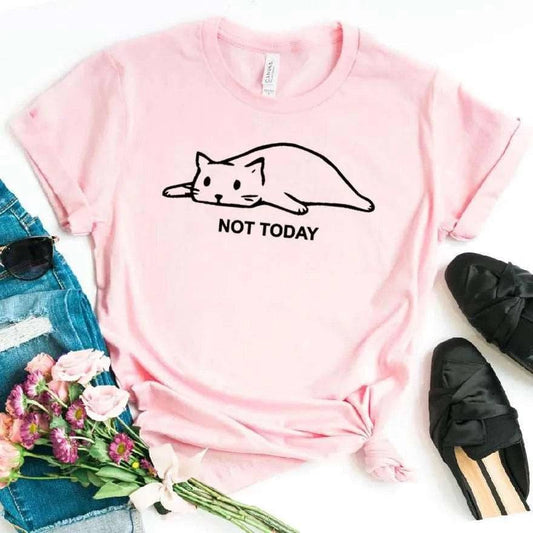 Pink Not Today Cat Women T-shirt Cotton Casual Funny For Lady Girl Top Tee