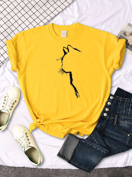 Yellow Cat Funny Printed Women T-Shirt Fashion Casual Short Sleeve O-Neck Tee Clothing Summer Tops