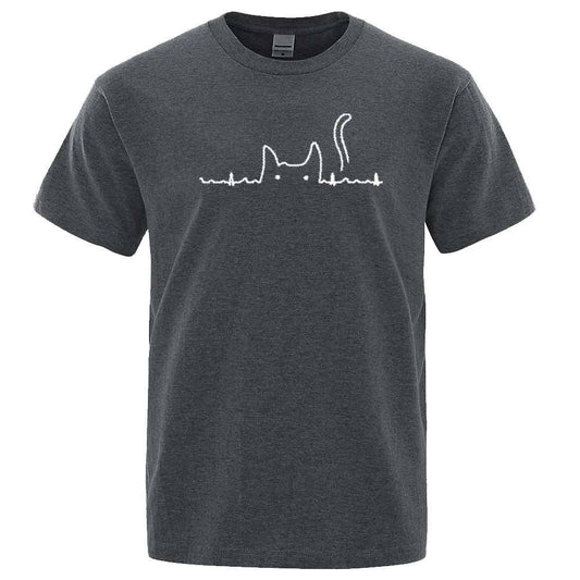 Dark Gray Casual Men's T-Shirts Cat Cute Printed Summer Cotton O-Neck Short Sleeve Top Tee T-shirts
