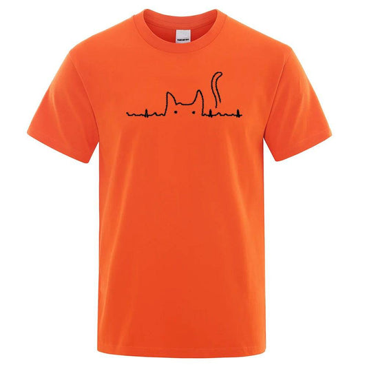 Orange Casual Men's T-Shirts Cat Cute Printed Summer Cotton O-Neck Short Sleeve Top Tee T-shirts
