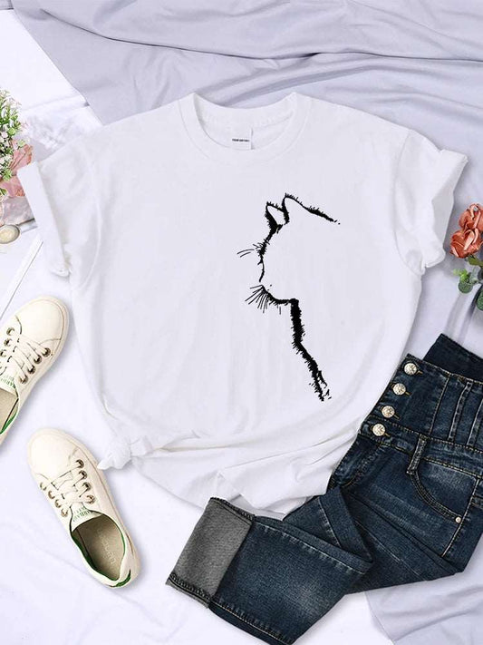 White Cat Funny Printed Women T-Shirt Fashion Casual Short Sleeve O-Neck Tee Clothing Summer Tops
