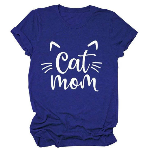 Purple "Cat Mom" Vivid Letter Print Women T-Shirt Short Sleeve O-Neck Loose Ladies Tee Tops Clothes