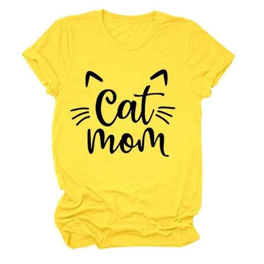 Yellow "Cat Mom" Vivid Letter Print Women T-Shirt Short Sleeve O-Neck Loose Ladies Tee Tops Clothes