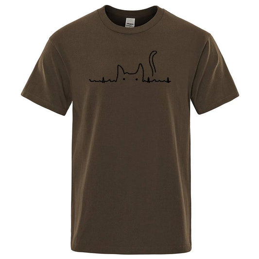 Brown Casual Men's T-Shirts Cat Cute Printed Summer Cotton O-Neck Short Sleeve Top Tee T-shirts