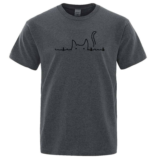 Dark Gray Casual Men's T-Shirts Cat Cute Printed Summer Cotton O-Neck Short Sleeve Top Tee T-shirts