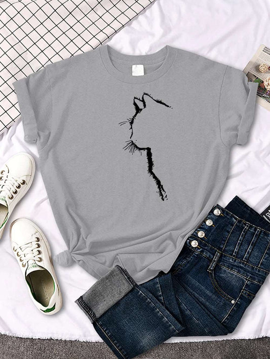 Gray Cat Funny Printed Women T-Shirt Fashion Casual Short Sleeve O-Neck Tee Clothing Summer Tops