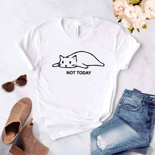 White Not Today Cat Women T-shirt Cotton Casual Funny For Lady Girl Top Tee