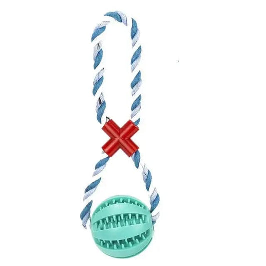 Blue Ball White Hemp Rope Toys Treat Interactive Rubber Leaking Balls for Small Dogs Chewing Bite Resistant Pet Tooth Cleaning