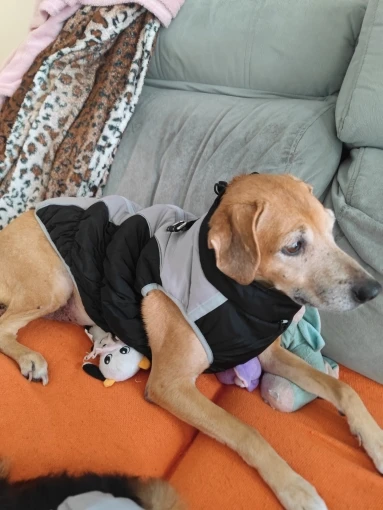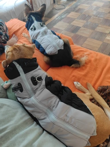 We are thrilled! The jacket fits my English Bulldog very well! The item description is accurate and the jacket fits perfectly. I would have been happy if the integrated harness went all around and not just the leash holders sewn onto the jacket, but it will do! Otherwise, for the price, it's a very good jacket for winter! The delivery was really fast this time. Thank you very much.