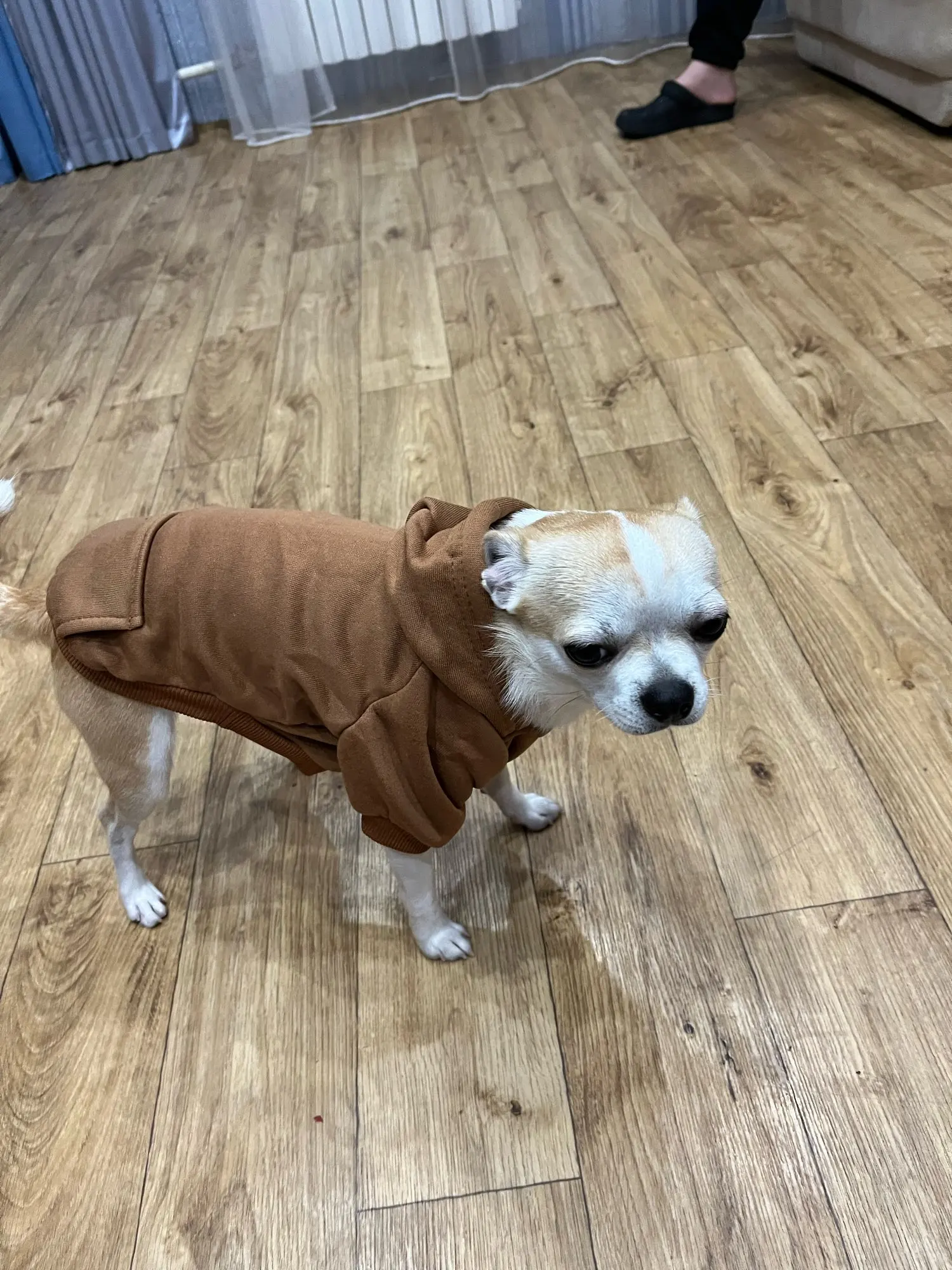 This dog hoodie comes in multiple colors, including orange, red, navy blue, pink, lavender, and tan—perfect for matching your dog’s personality or coordinating with your favorite outfit. Whether you're heading out for a walk or lounging at home, this hoodie will keep your pup cozy and looking cute.