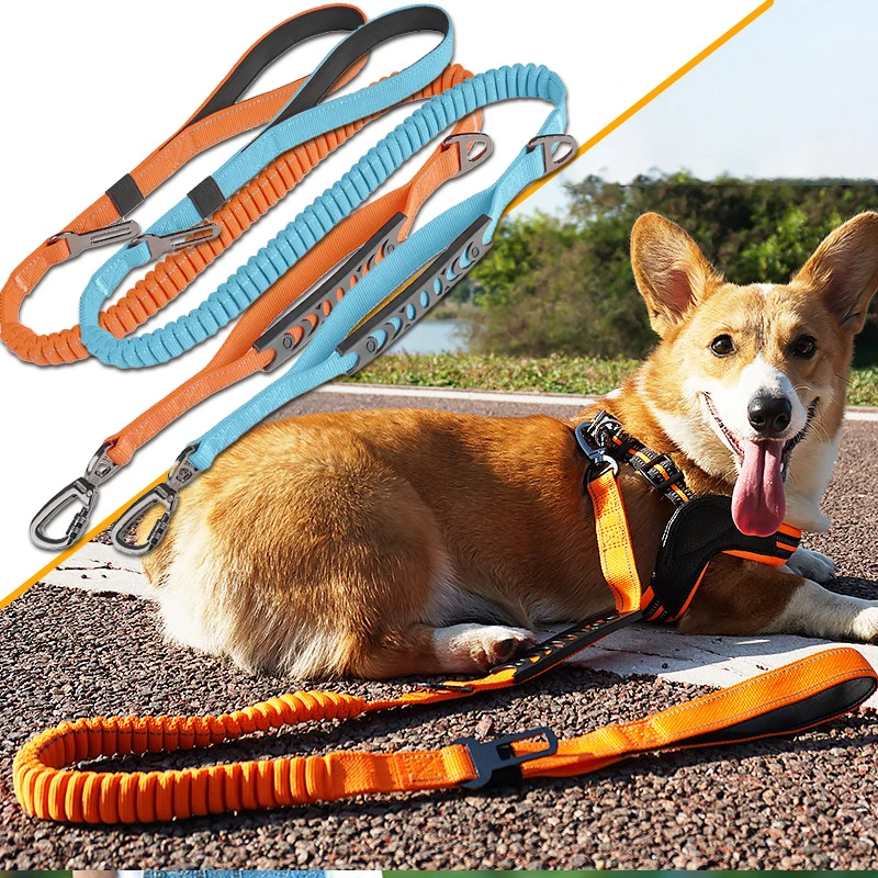 Make every walk smoother and safer with this multi-functional shock-absorbing dog leash, designed to reduce pulling strain while keeping both you and your dog comfortable. Crafted from durable nylon with reflective stitching, this leash is perfect for daily walks, training, jogging, and travel.