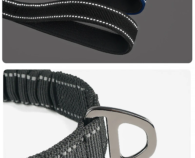 Dark Blue Reflective Shock-Absorbing Dog Leash with Car Safety Buckle