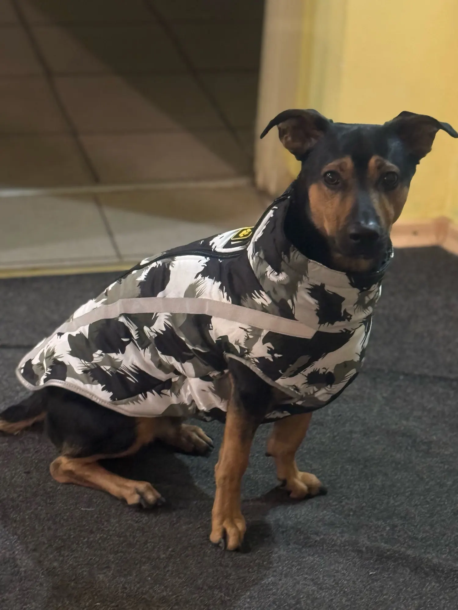 Designed for active dogs, this jacket combines a lightweight, sporty look with elastic cuffs that allow full freedom of movement. Whether your dog loves to run or roll in the snow, this coat ensures comfort and flexibility. A hidden leash hole adds a practical touch for daily walks.