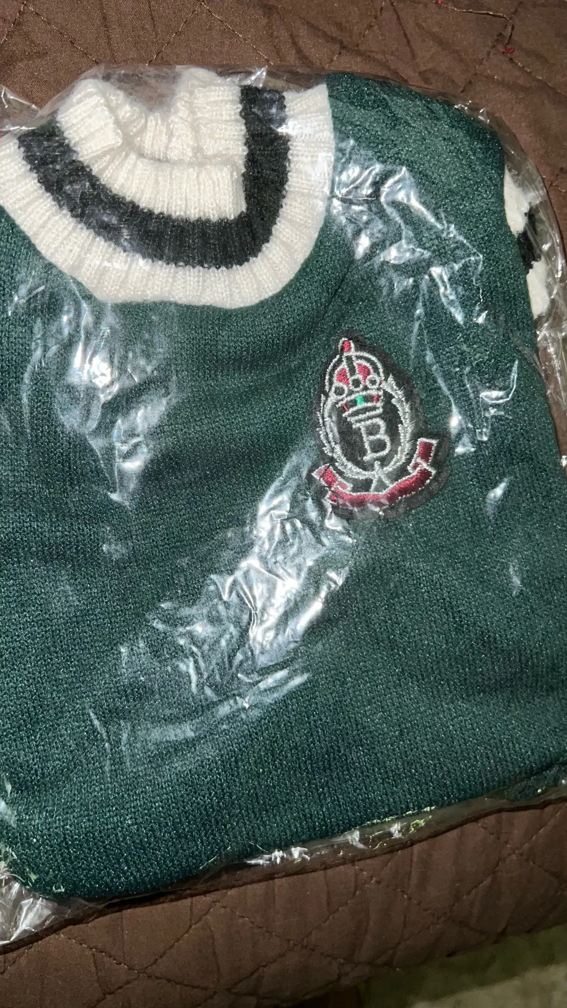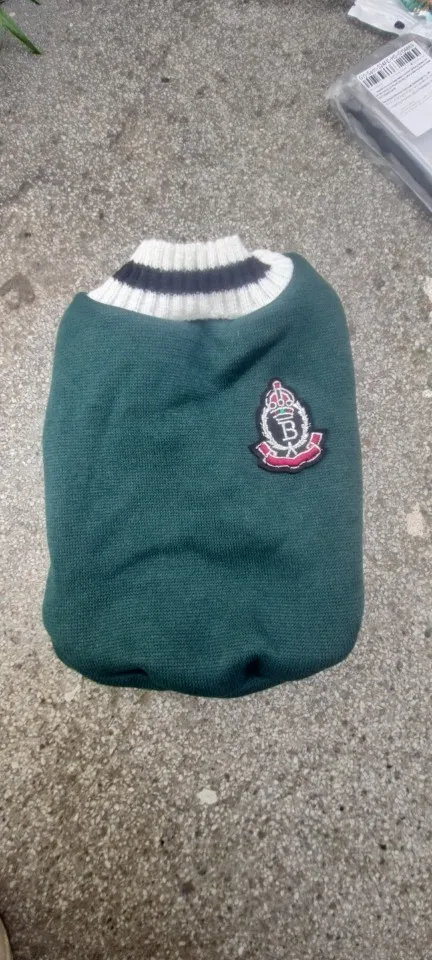 Green Preppy Style V-Neck Dog Sweater Warm Winter Pet Cloth