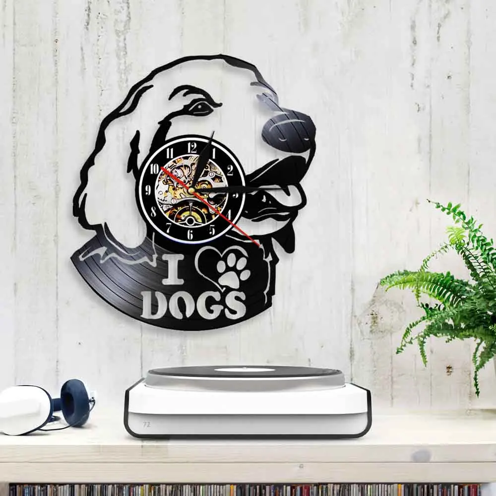I Love Dog Labrador Head Silhouette 3D Wall Lovely Dog Puppy Vinyl Record (WITHOUT LED) Wall Time Clock Unique Gift For Dog Lovers