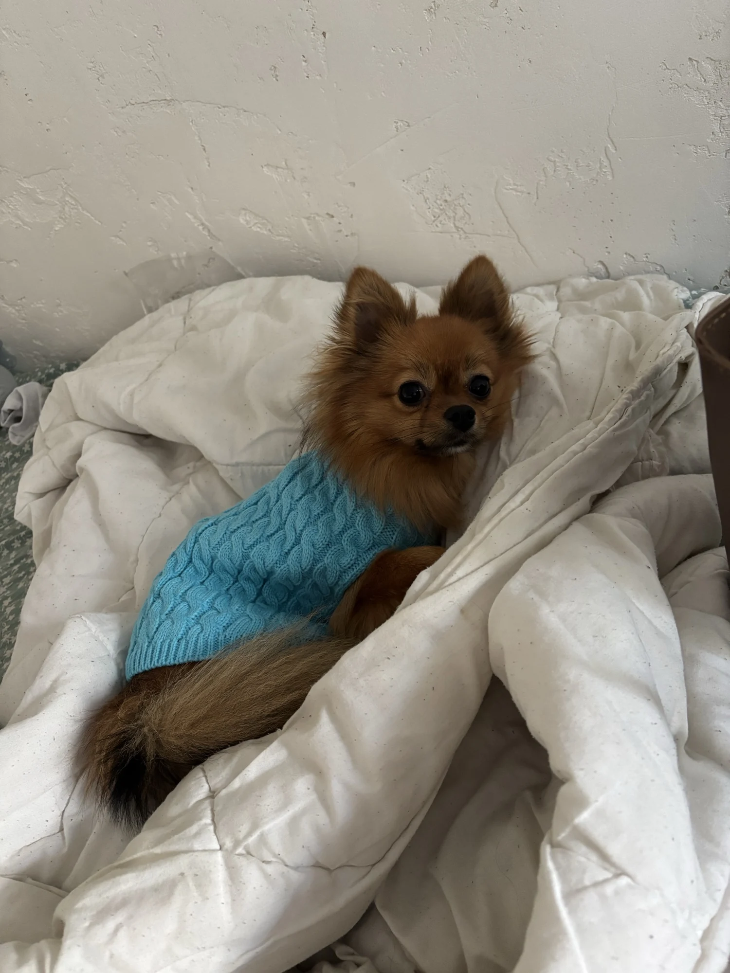The package arrived quickly and was well-packaged! An excellent lightweight sweater! It stretches well! It fits perfectly for my large girl (French bulldog)! I definitely recommend the seller! I will definitely order a few more!