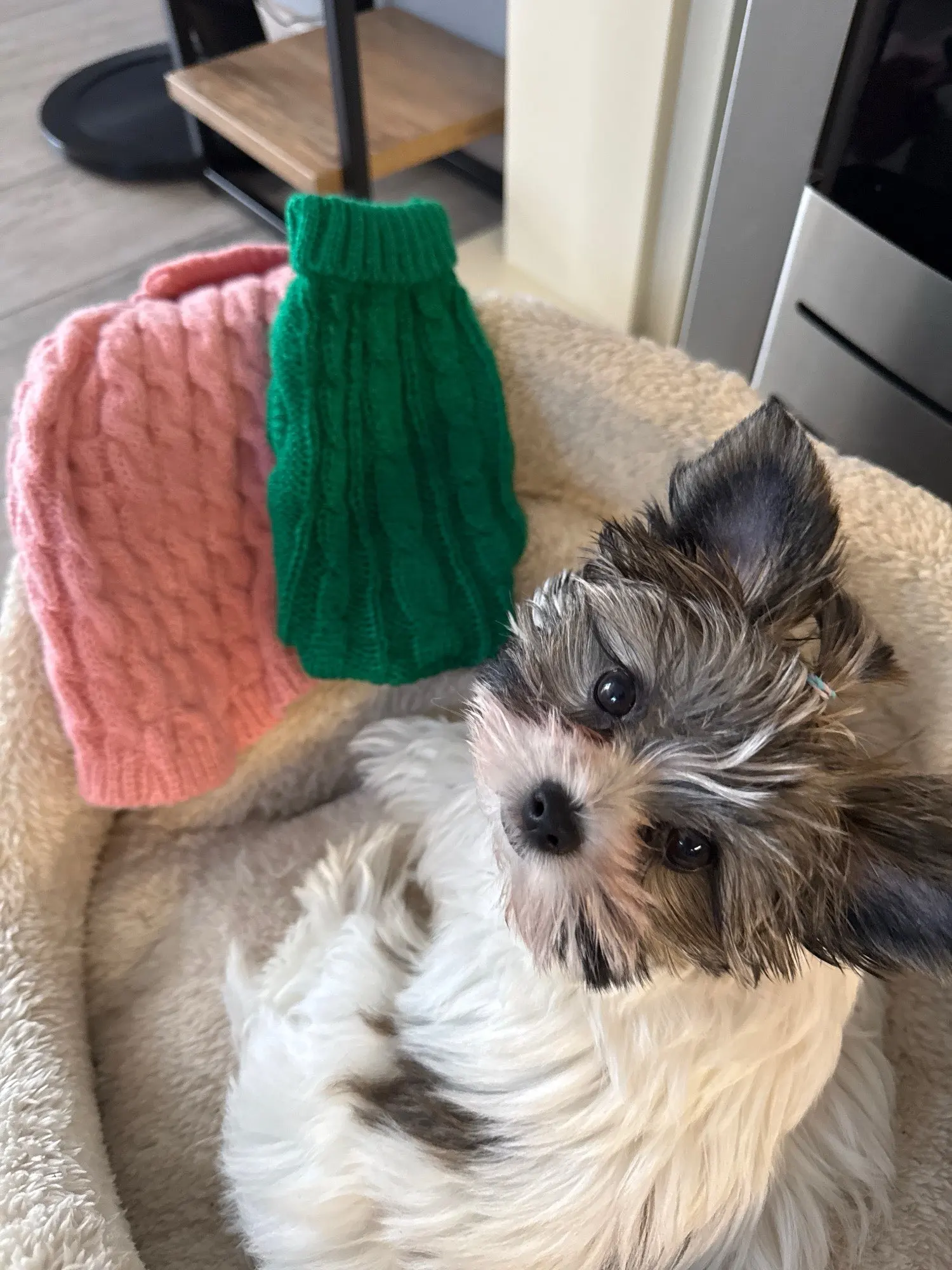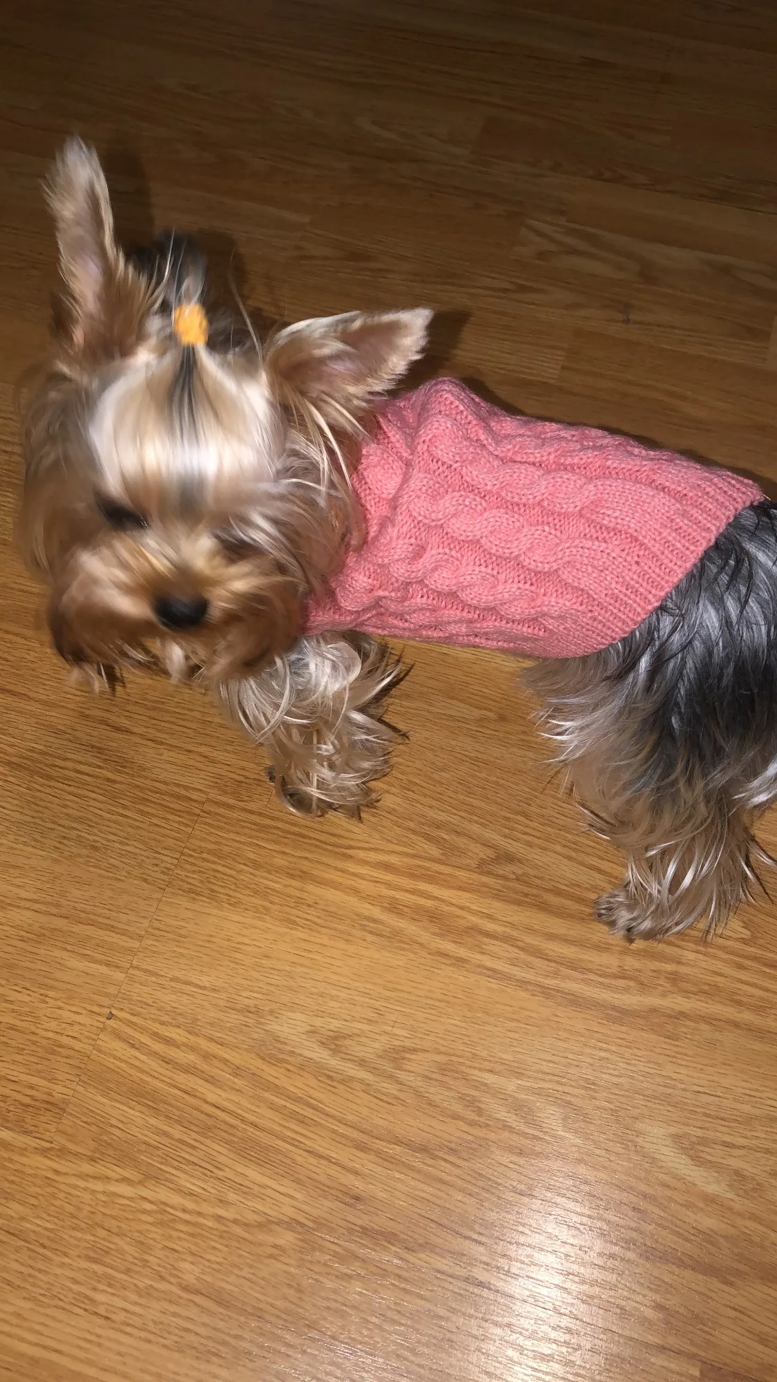 Size L for a Chihuahua weighing 3200 is too big. I sewed an elastic band around the neck and sewed it in the belly area so it wouldn't come off. Otherwise, everything is fine 😅