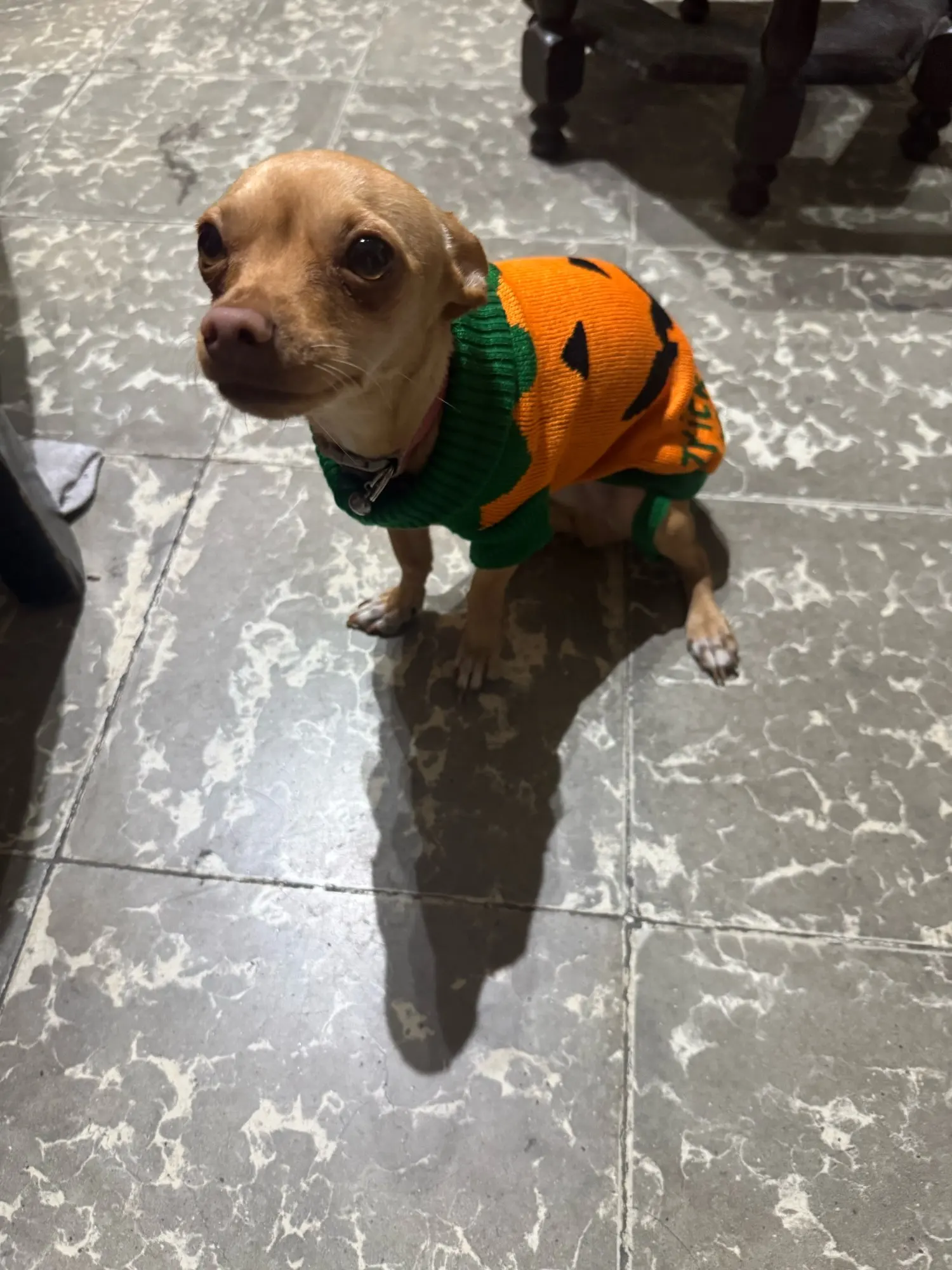 My dog is ready for Halloween 🎃 my dog weighs 2. 8 kg and it's a venison chihuahua, it was a little big on him, but no big deal at all, I'm very happy because to me it looks beautiful, I liked the quality and the design too, without a doubt I will buy more designs again and I think I'll order size 8 to see if it fits better, as a reference my dog wears size S in other clothes from here on AliExpress, I bought this one in L because they mentioned in comments that it came very small, I agree but I think size M (8) would fit my dog better, I loved it! ! !