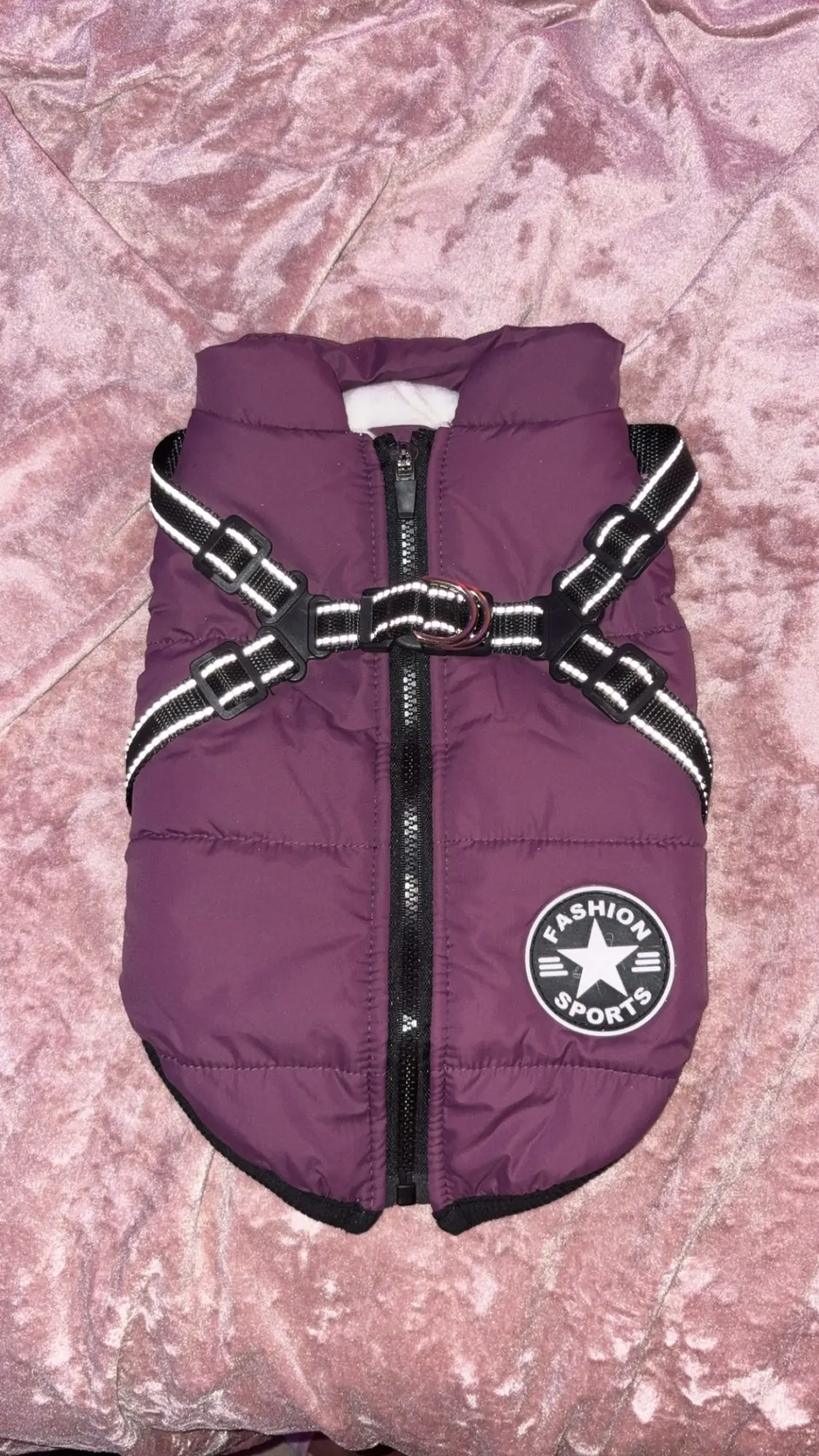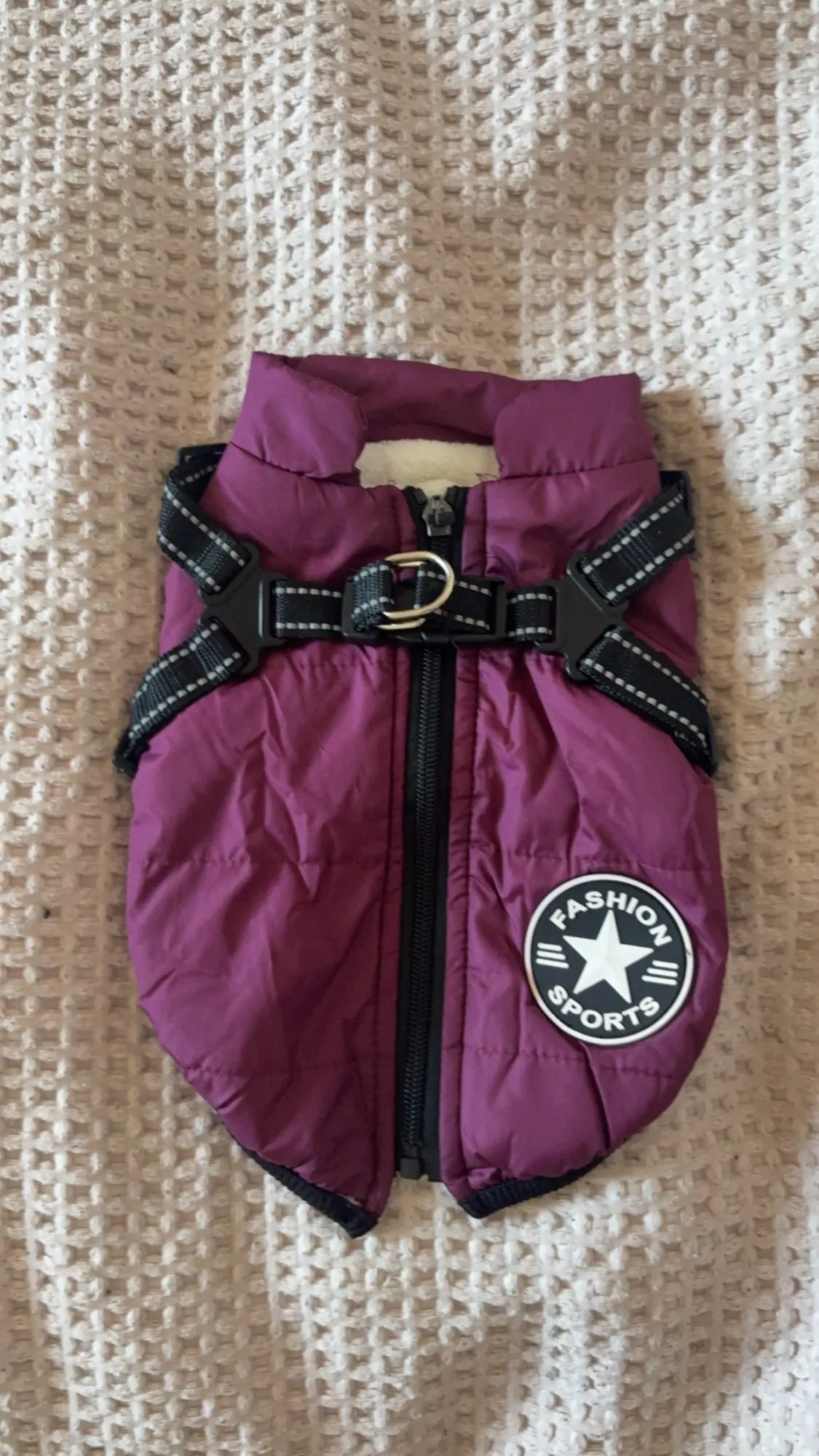 Purple Winter Pet Clothes For Small Large Dogs Warm Fleece Jacket Waterproof With Harness Clothing Puppy Costume