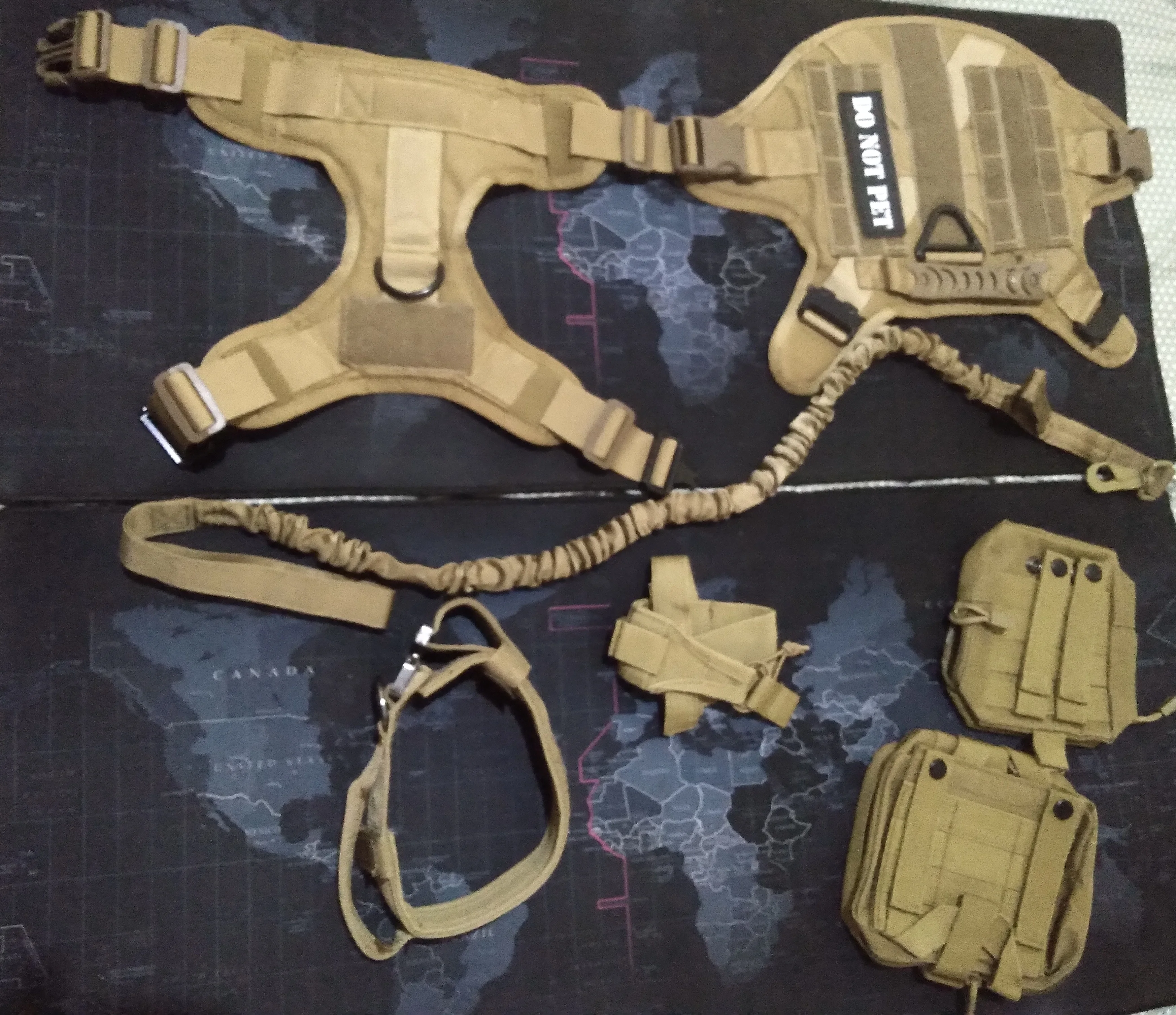 Sand Khaki Durable Nylon Tactical Dog Harness Collar Leash Set