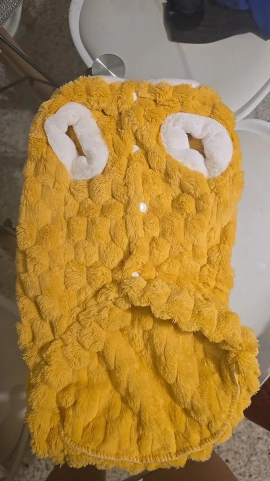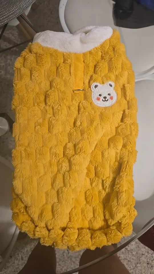 Beautiful outfit for my dog, super gorgeous. I highly recommend this product; the fabric is warm and of very good quality. It arrived very quickly.