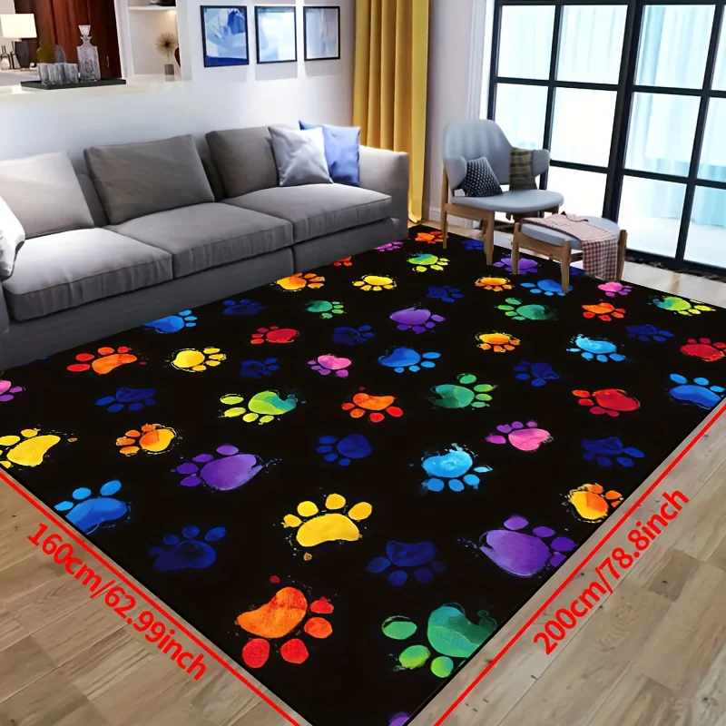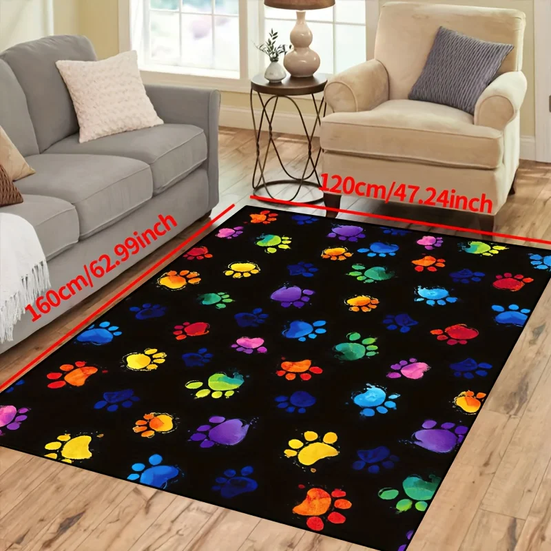 Vibrant Dog Paw Print Area Rug Colorful, Non-Slip & Machine Washable Pet Mat for Living Room, Bedroom, Nursery