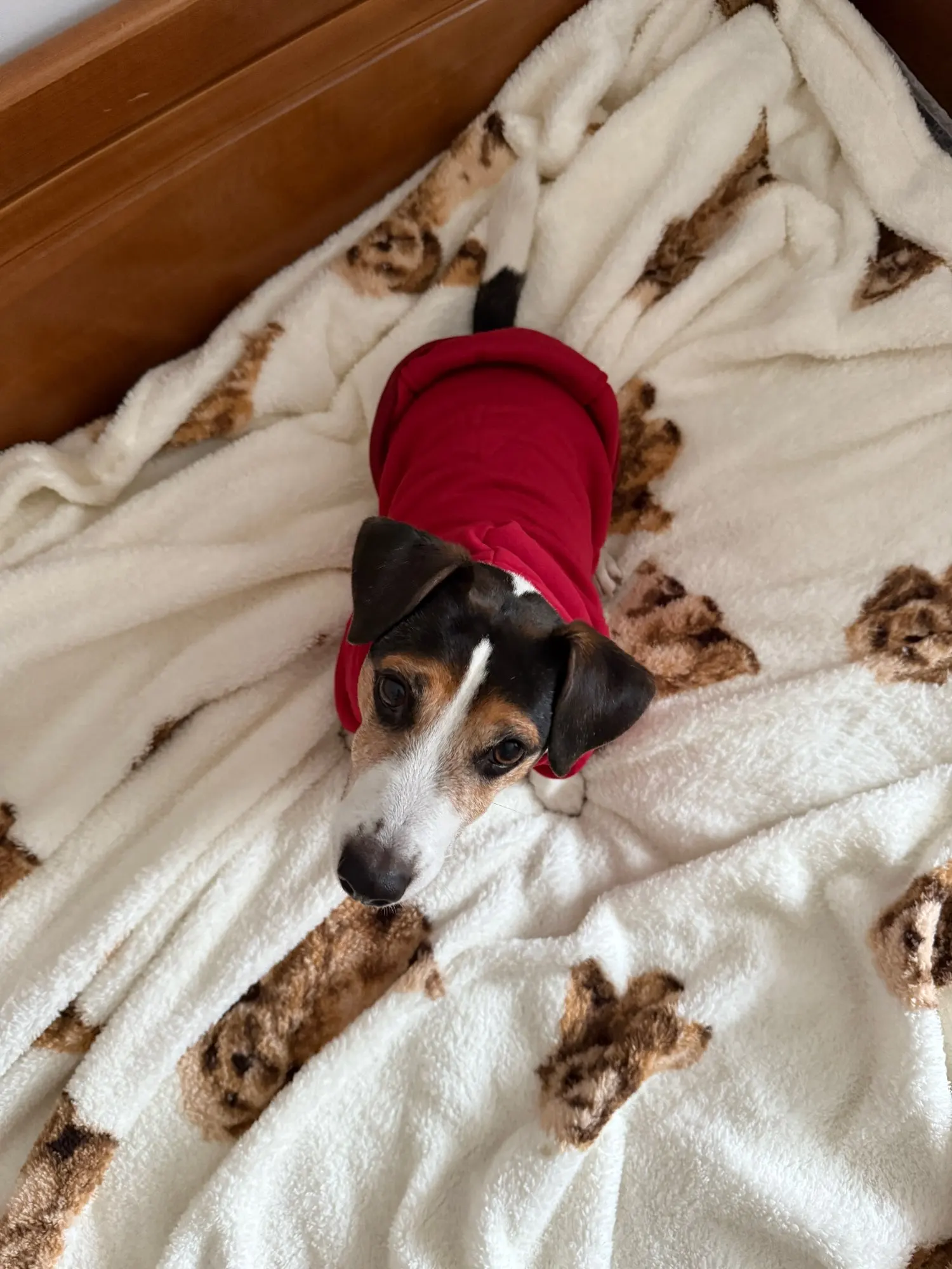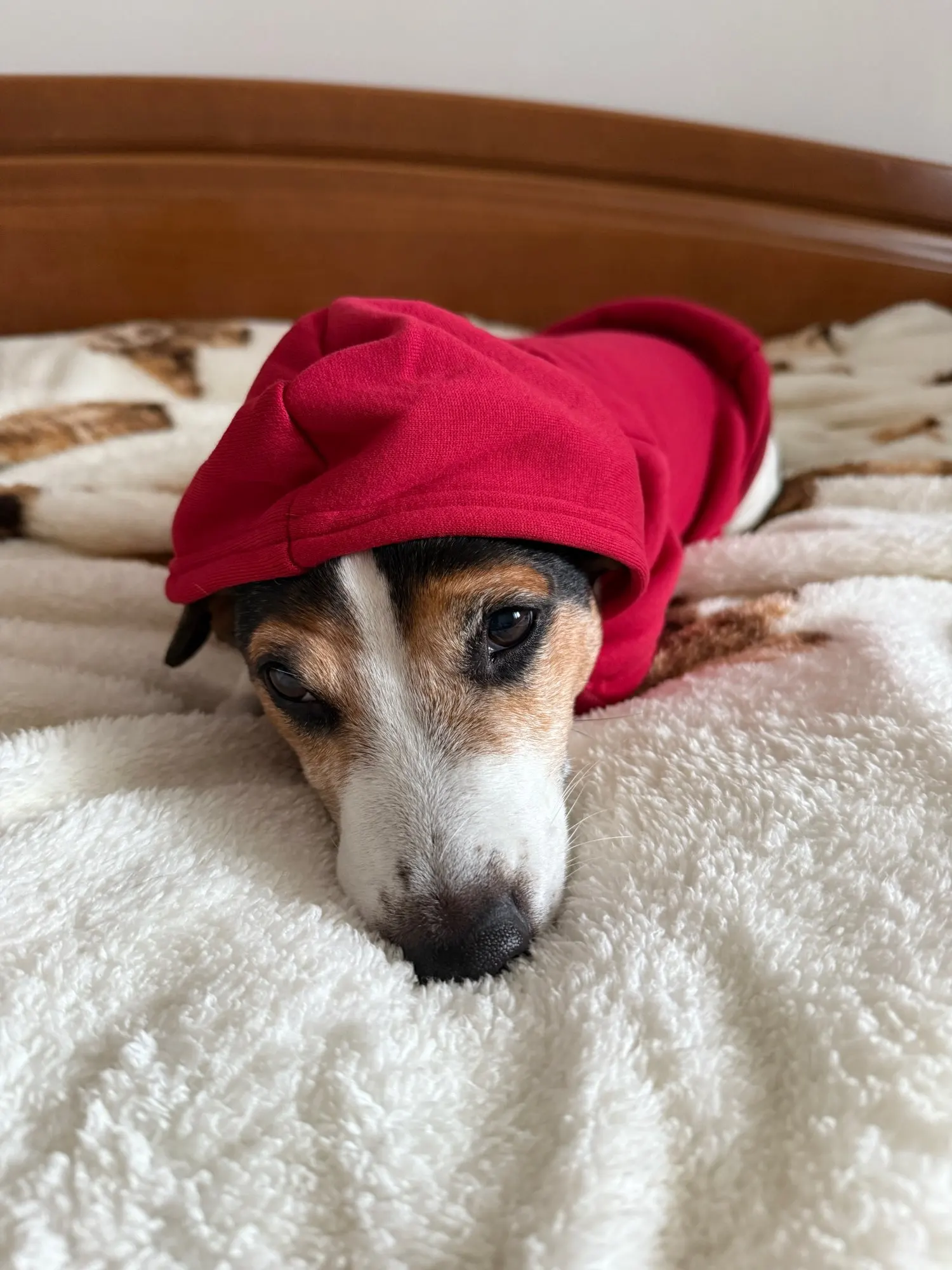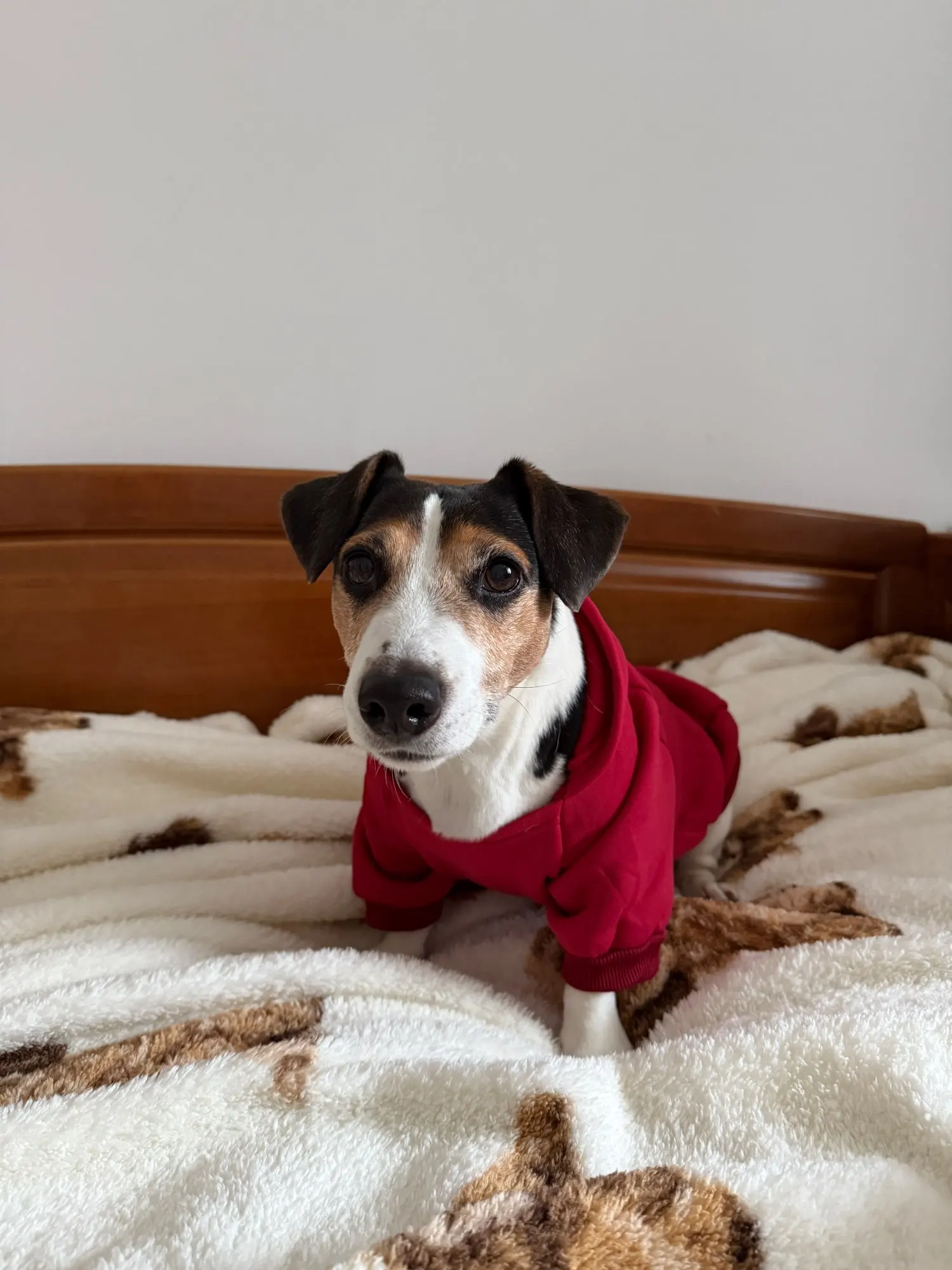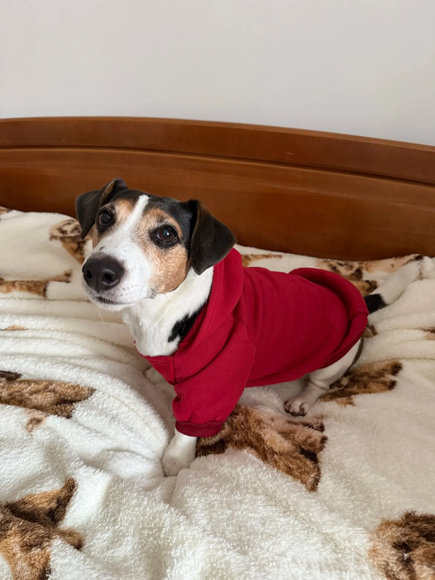 A wonderful hoodie for its price. Fits well on Jack Russell weighing 7.8 kg. Our measurements: neck 33, ribs 48. A bit long in length, but I like that the back is closed and warm. The jacket has a fleece lining, but the fabric is not very thick.