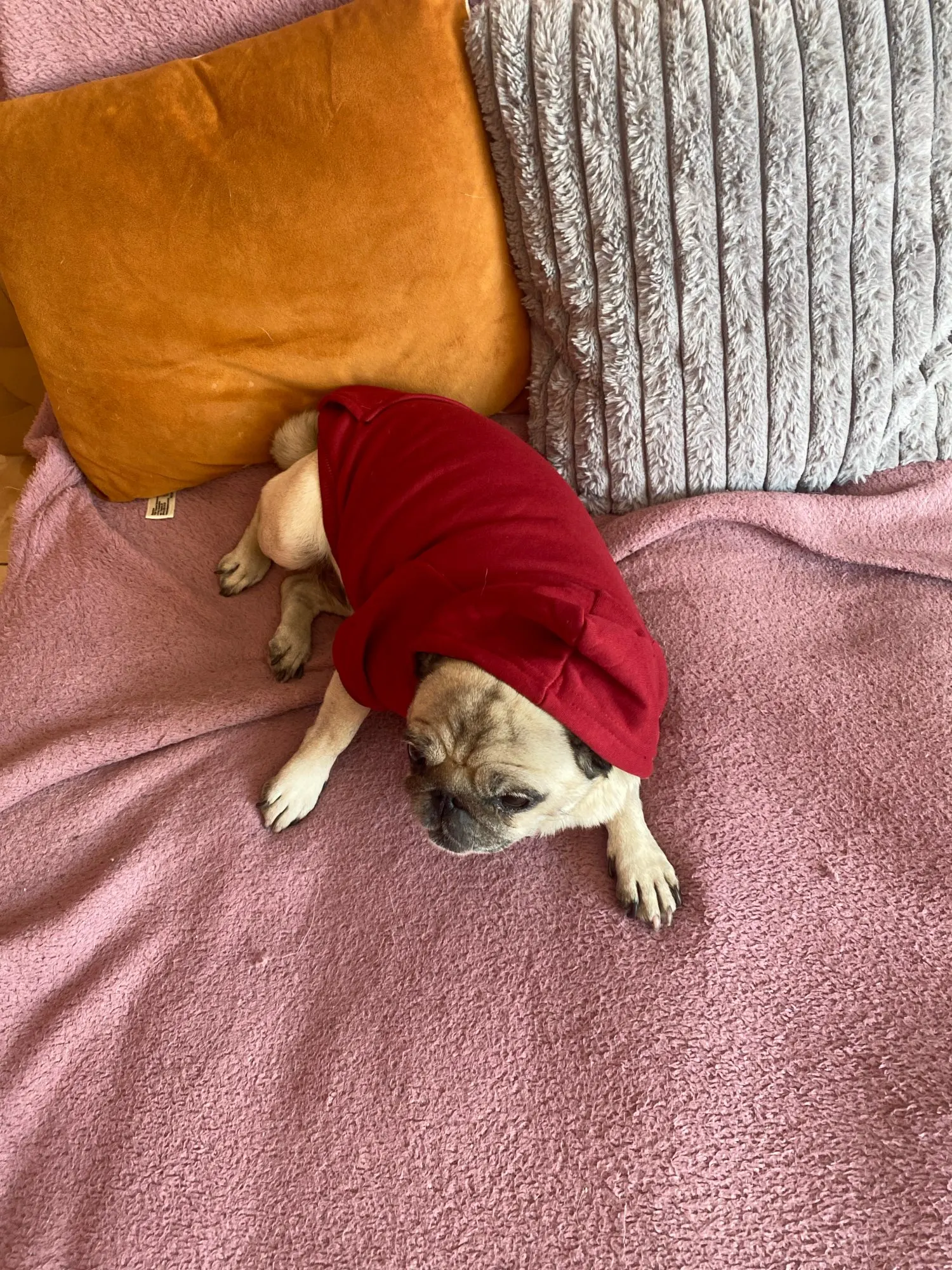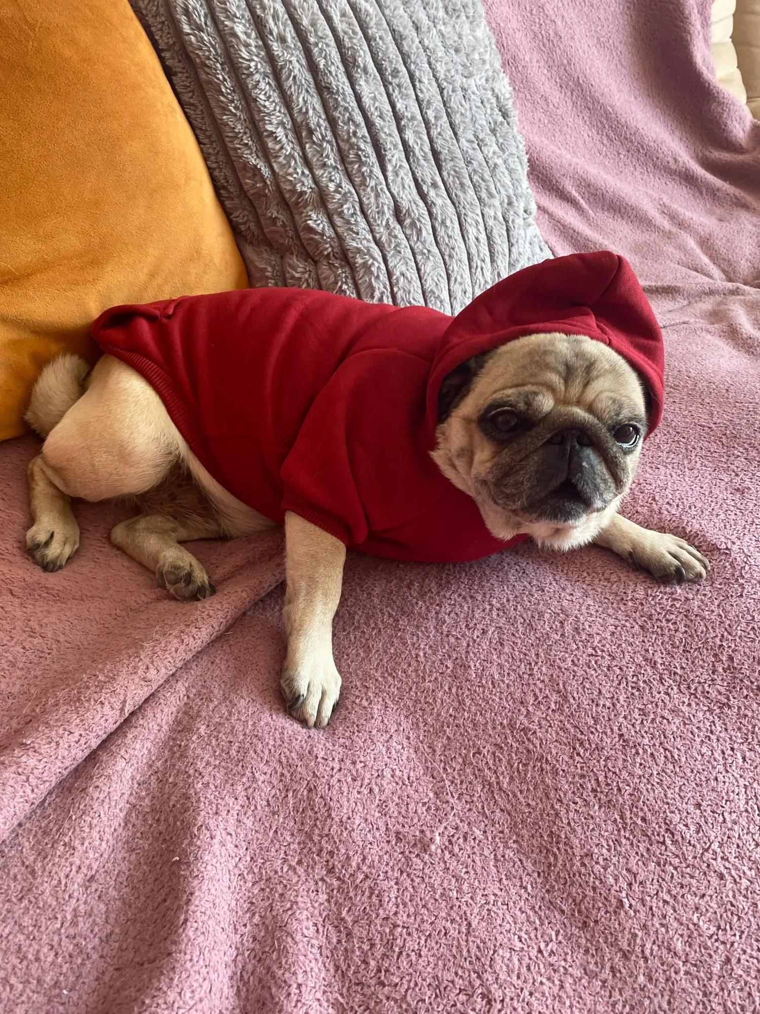 This dog hoodie comes in multiple colors, including orange, red, navy blue, pink, lavender, and tan—perfect for matching your dog’s personality or coordinating with your favorite outfit. Whether you're heading out for a walk or lounging at home, this hoodie will keep your pup cozy and looking cute.